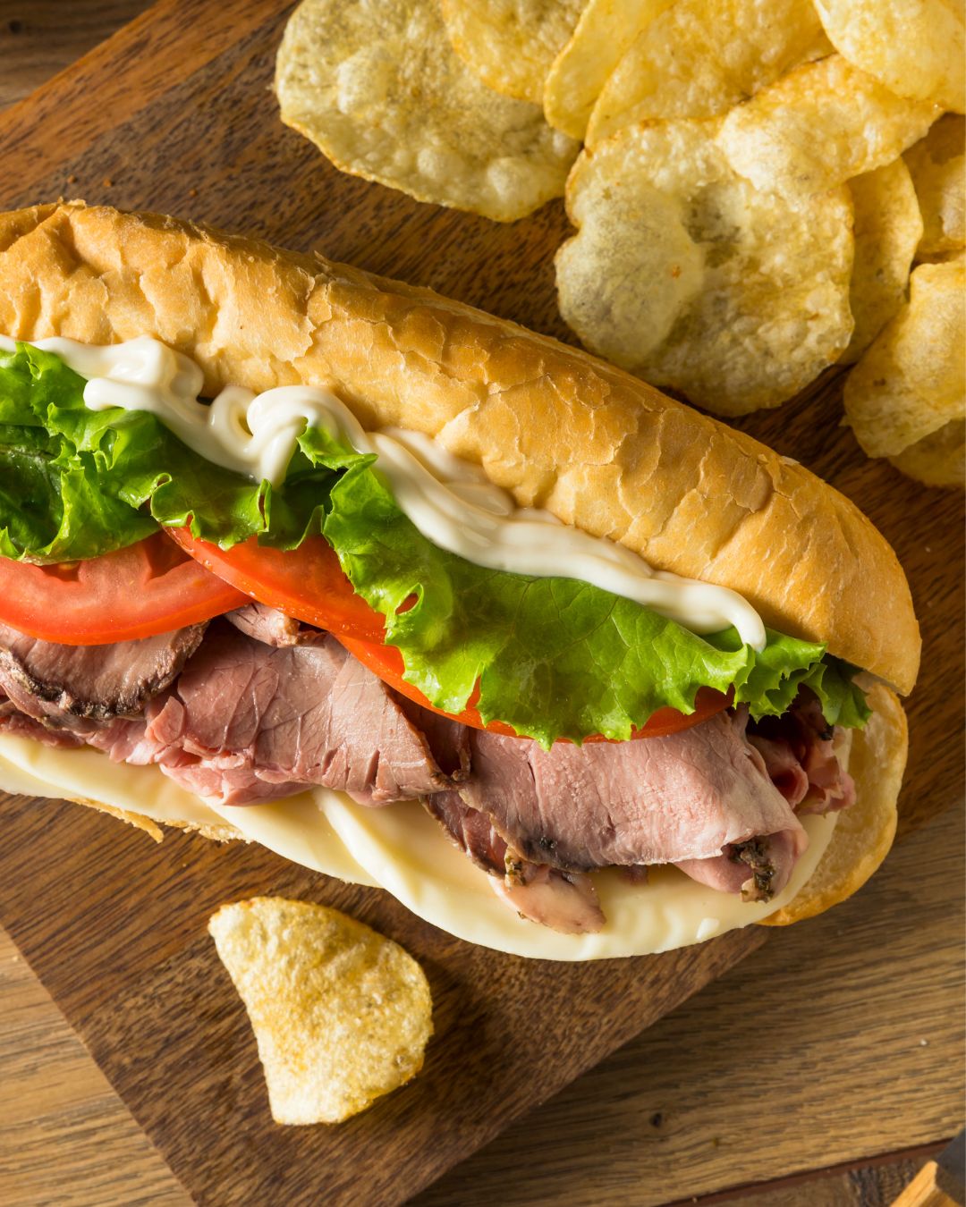 Deli Chicken, Cheese, Tomato, Onion, Mayo & Basil Pesto